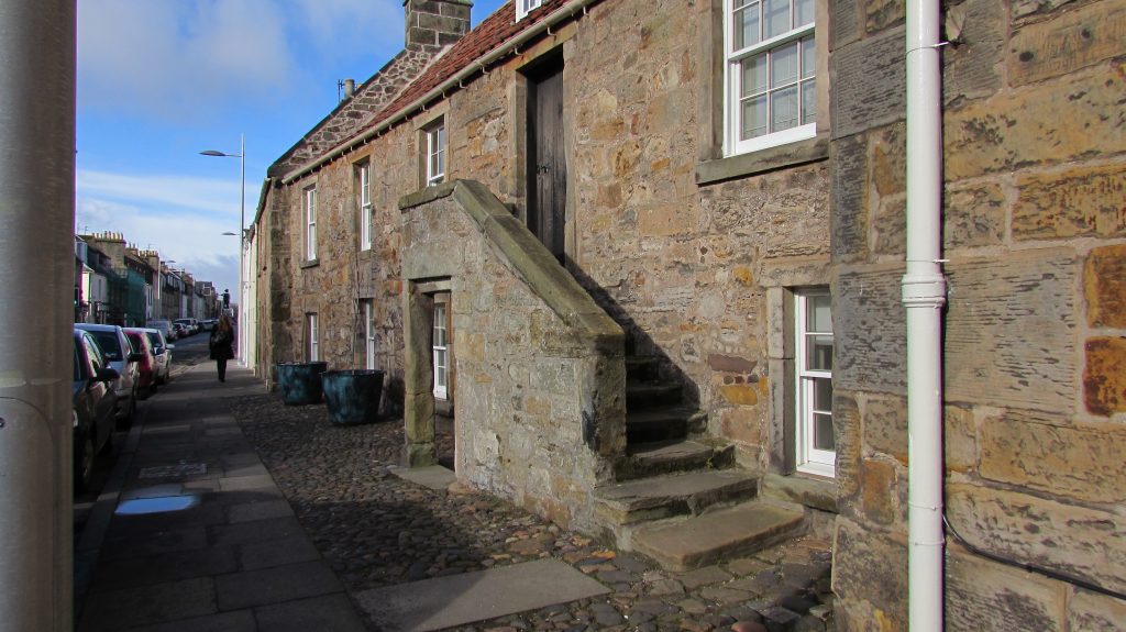 The streets to the east of the University were where the fisher folk lived. Fisher Gate, a port gate, was to the east of the Castle, and led down to the harbour. The houses would have all had external stairs to house families upstairs and below. Sometimes more than one family would share the same